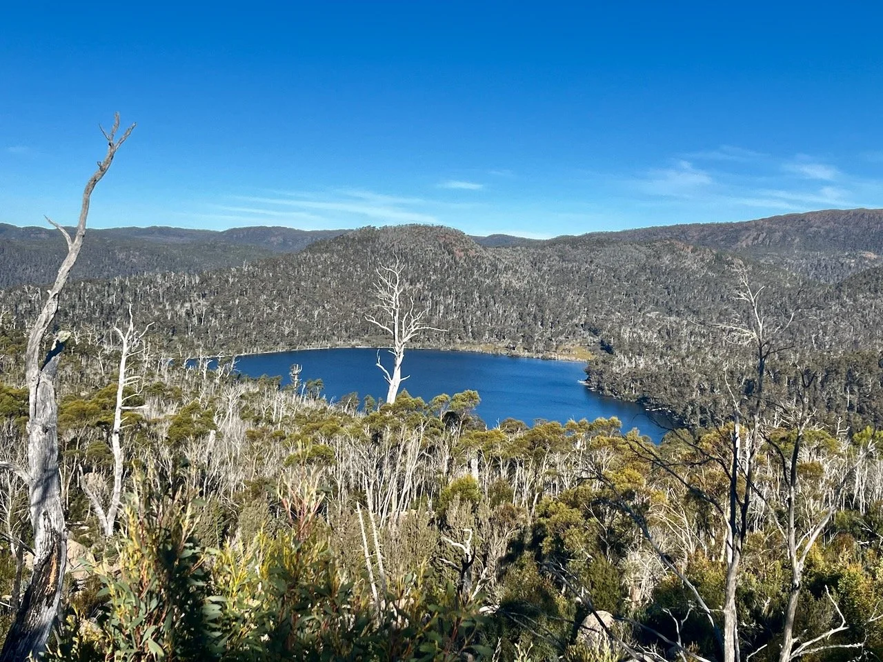 As it turned out, while not marked, the route we took in from the southern point on the Lake Myrtle Track was in fact a gentler climb than the cairned route. Luckily, after only about 15 minutes of climbing, we found ourselves on the cairned route and followed it the rest of the way to the summit. The route was mostly through scrub or open forest, so didn’t provide much in the way of views, however there was a vantage point that provided a good view over Lake Bill.