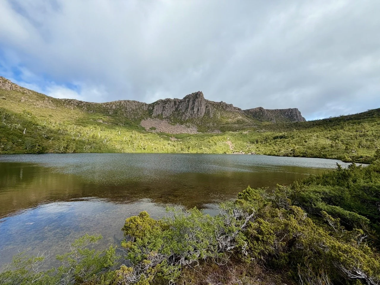 Starting at Echo Point, the route starts north along the Overland Track. Not quite 2km north of Echo Point you cross several bridges over streams that are quite close together and immediately after will encounter a small cairn and a pad that leads up the mountain.